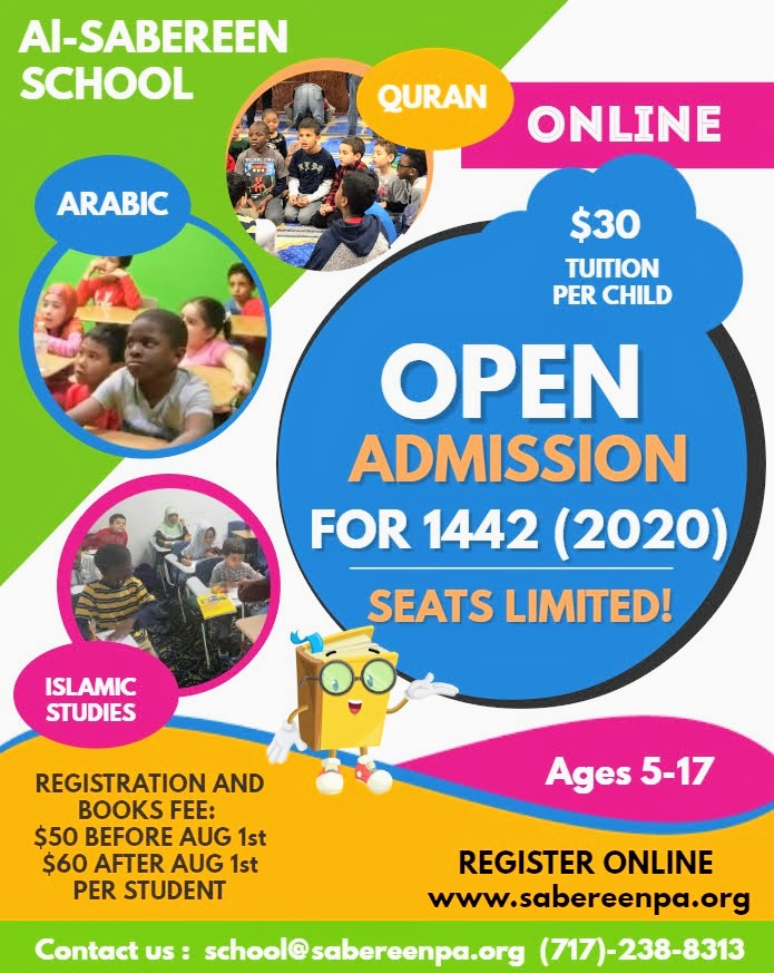 Al-Sabereen School is pleased to inform you that enrollment for 1442 (2020) is now open. The classes will be online for the first semester (Aug- Dec), and will announce more details about the 2nd semester during the year Insh'Allah.