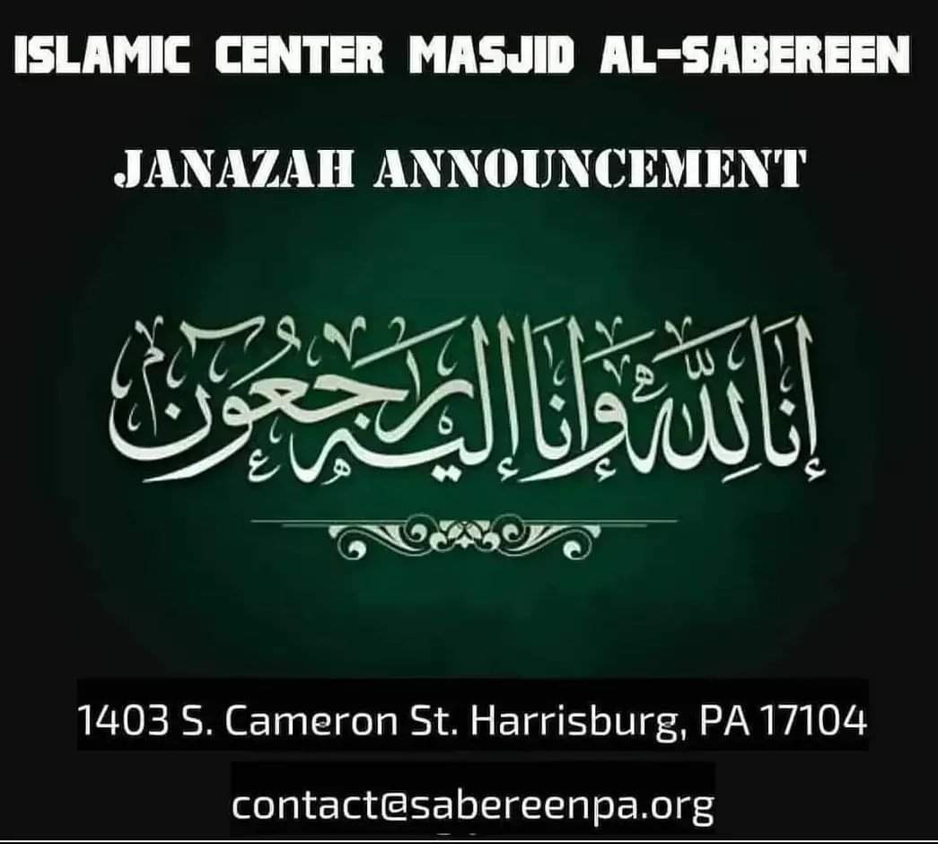 Janazah prayer will be at the Masjid on Sunday after Duhr Insh'Allah, and burial will be at Grantville cemetery.
