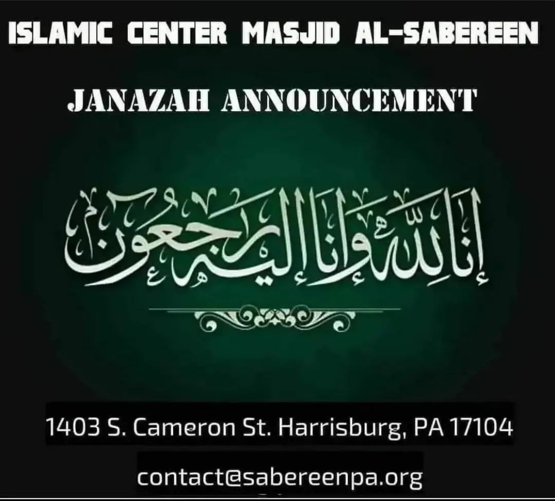 Janazah prayer at Islamic Center Masjid Al-Sabereen on Saturday 26th after Duhr prayer Insh'Allah.