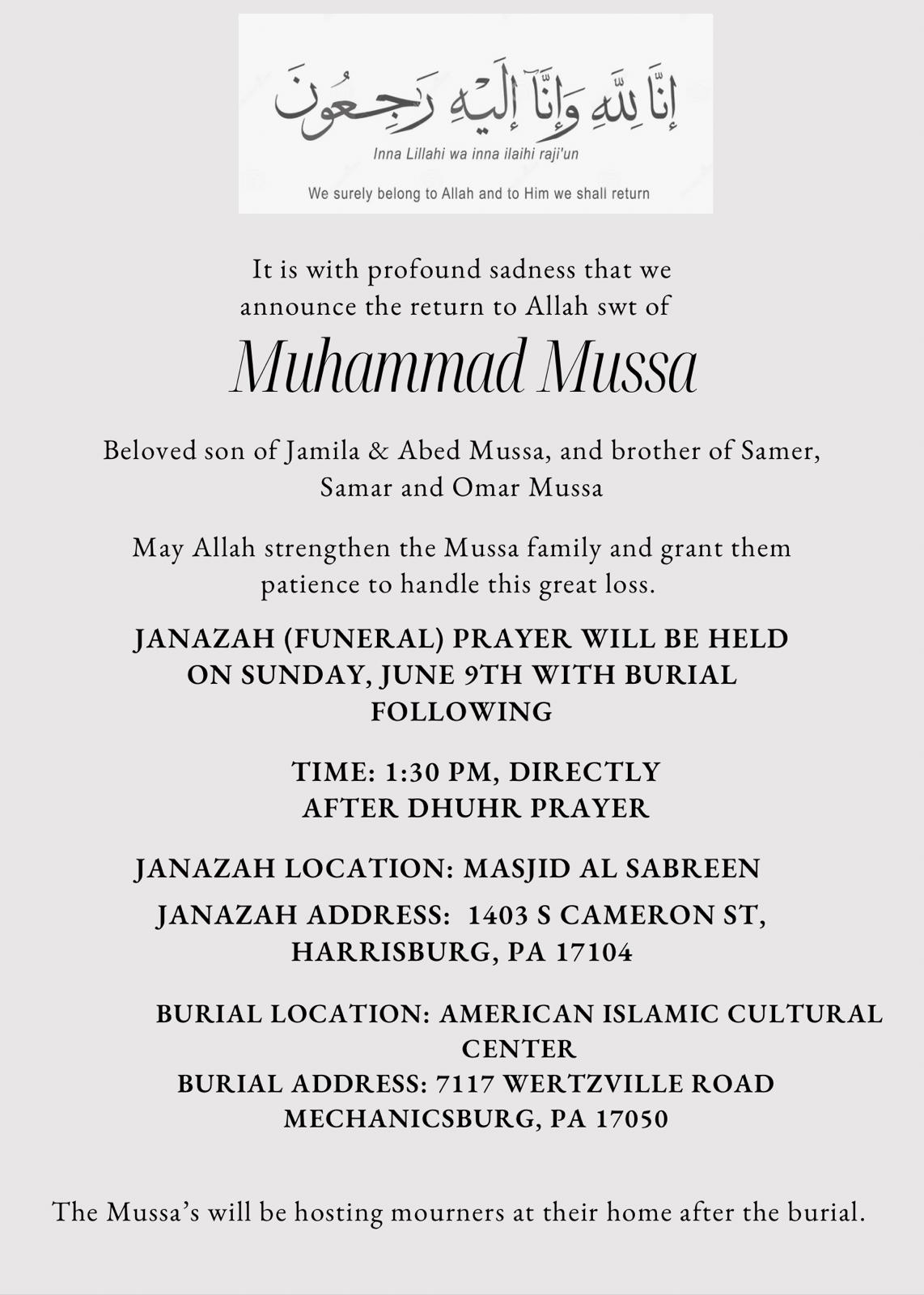 Janazah Prayer for Br. Muhammed Mussa