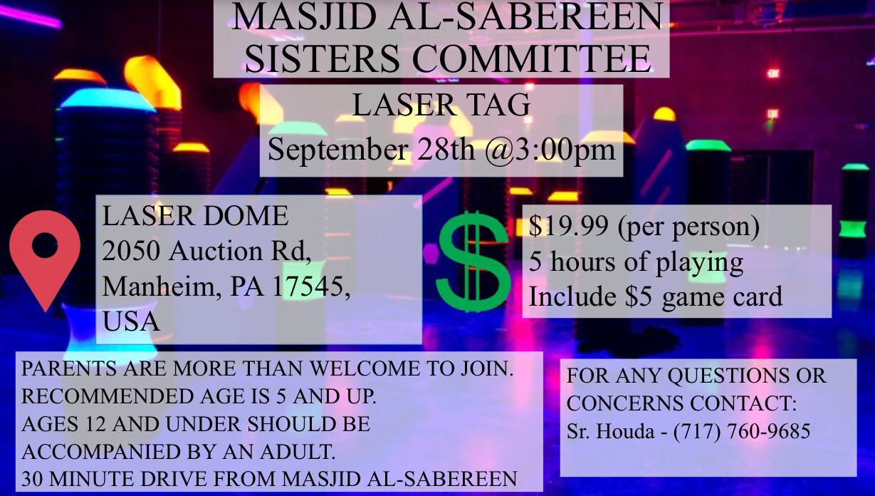 Please join us for our first sisters laser tag meet up happening next Saturday 9/28 at 3pm.