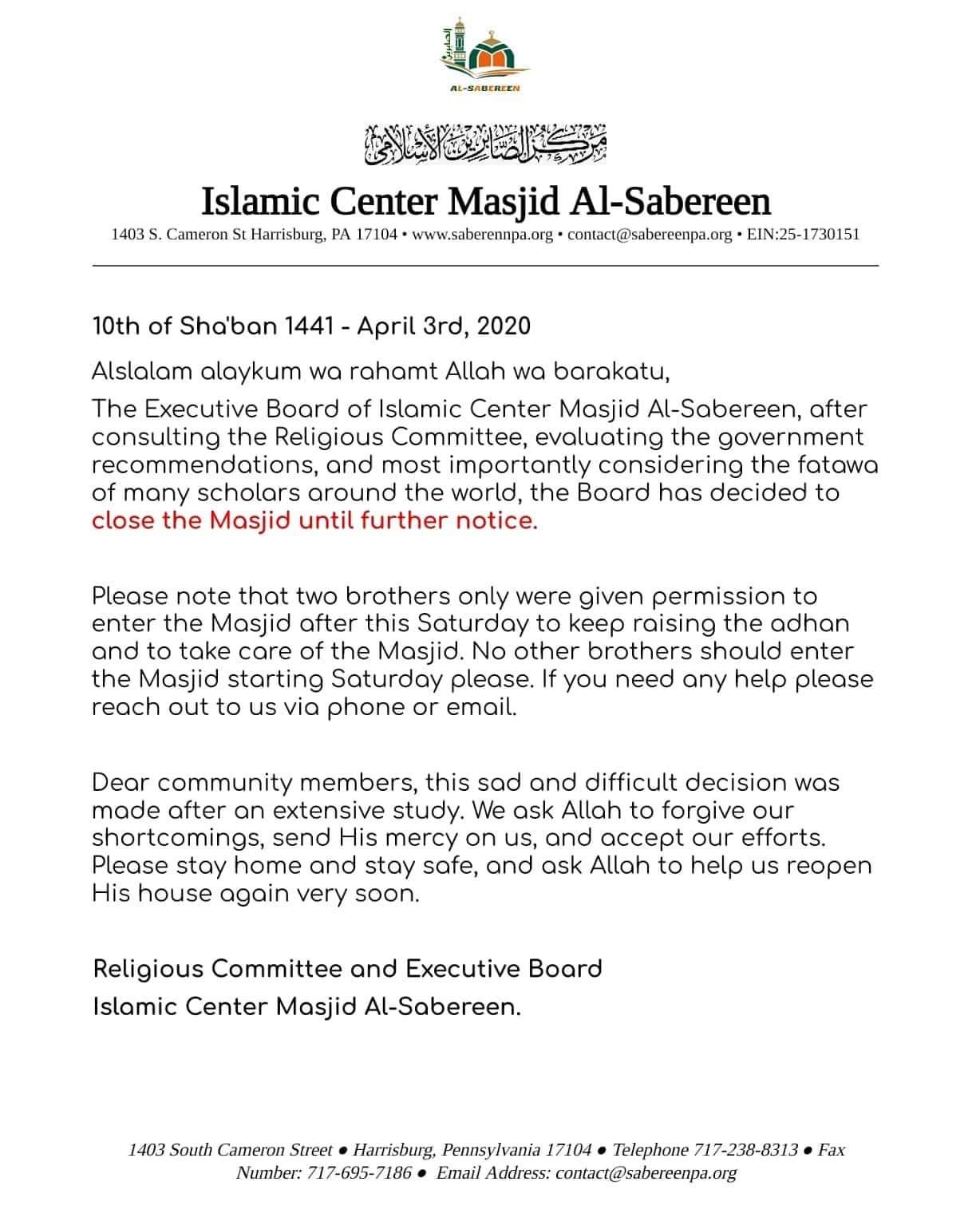 Masjid Al-Sabereen is Closed