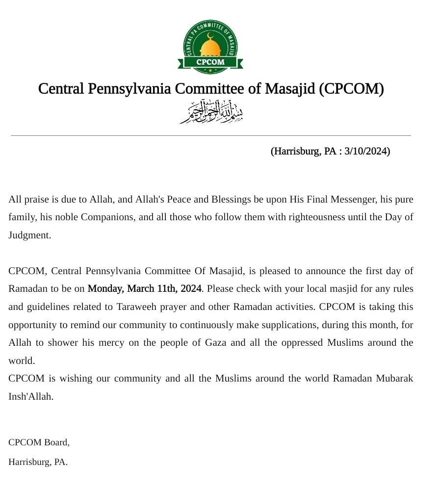 Ramadan Starts Monday- Taraweeh starts tonight Insh'Allah