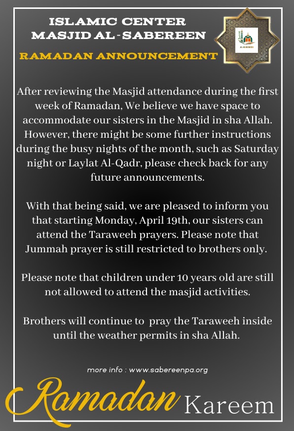 Sisters are welcome to attend the Taraweeh starting tonight.