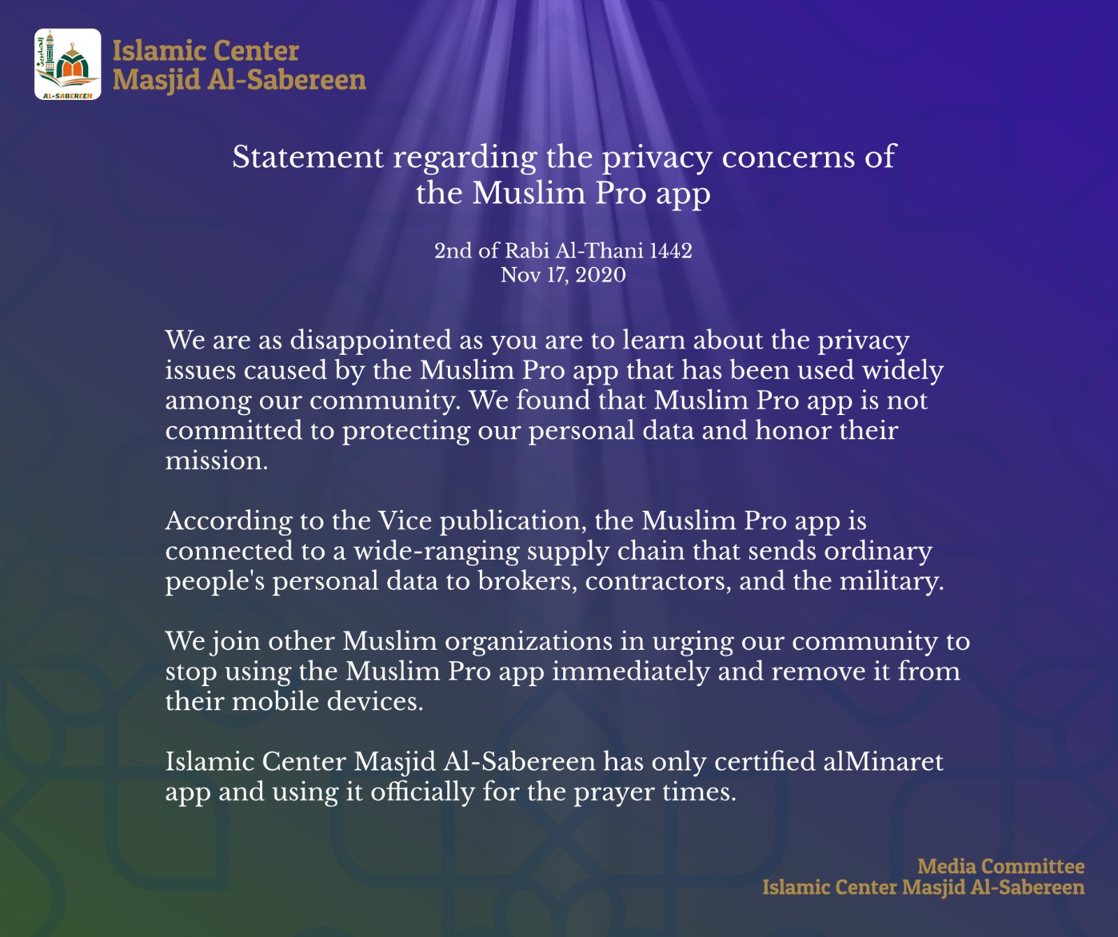 Statement Regarding the Muslim Pro App