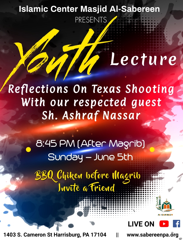 Please join us for a social night and dinner followed by lecture with our respected guest Shaikh Ashraf Nassar.
